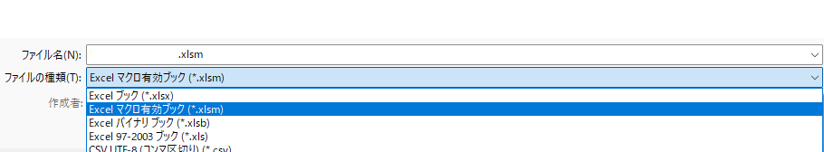 「Excelマクロ有効ブック(.xlsm)」で保存します。