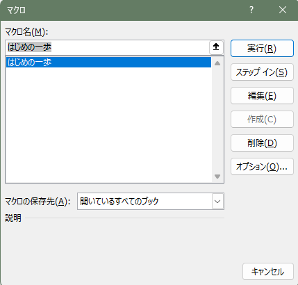 開発→マクロを選ぶとプログラムの一覧がでてきます。